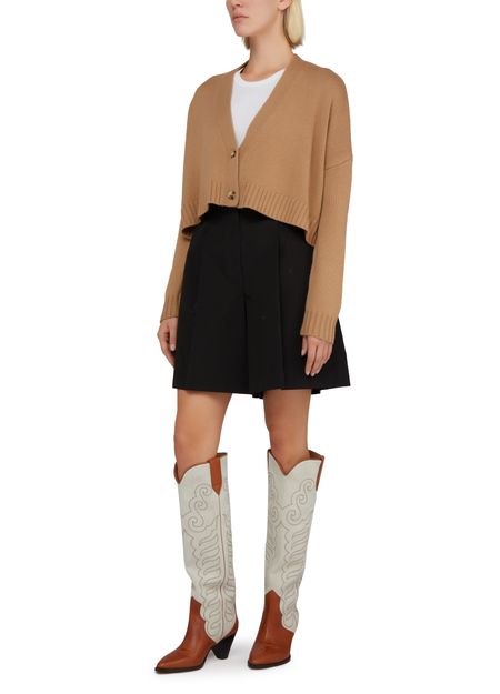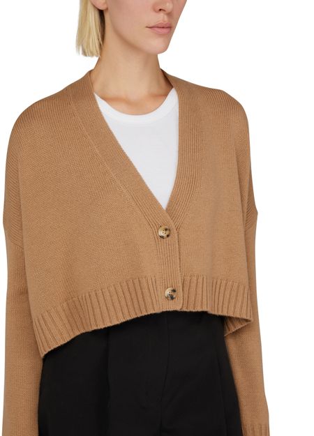 Max Mara's Sabbia cropped cardigan is a stylish and versatile piece that features a long-sleeved gilet design with a straight cut. Made from a ribbed fabric, it has a classic V-neck and buttoned fastening for a polished look. This cardigan is perfect for layering and adding a touch of sophistication to any outfit.