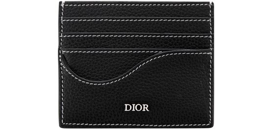 Unveil Dior's Saddle Card Holder, a sleek accessory featuring a ruthenium-finish brass Dior signature prominently displayed on the front. This elegant card holder offers multiple slots: three on the front, three on the rear, and a top card slot, ensuring organization and style.