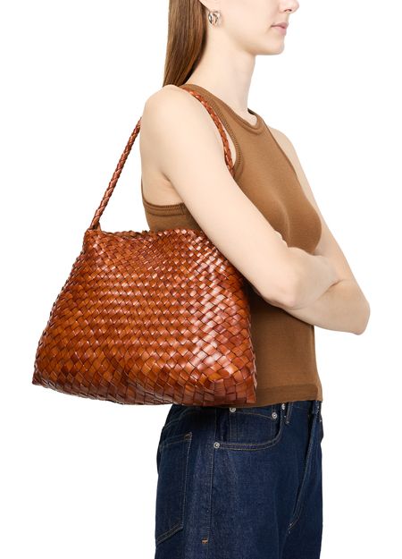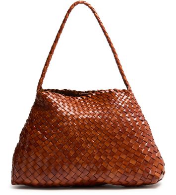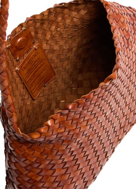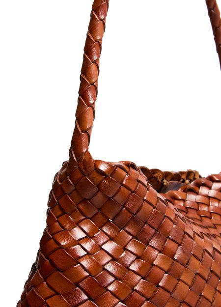Reveal Dragon Diffusion's Santa Maria shoulder bag, crafted from smooth leather with an open weave design. This elegant piece features a single handle and a magnetic closure, offering both style and functionality. The large interior compartment ensures ample space for essentials, while visible stitching adds a touch of sophistication.