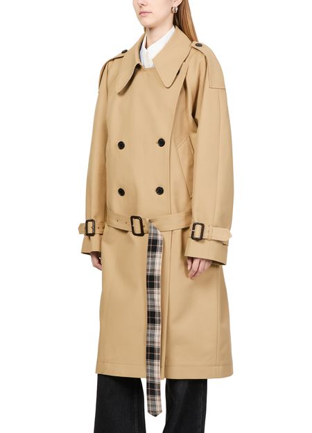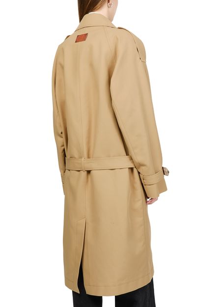 Unveil Acne Studios' satin trench coat, a timeless piece in a regular fit that exudes sophistication. This long, double-breasted coat features a classic collar and flap pockets, combining elegance with functionality. Perfect for any setting, its versatile design ensures a stylish look wherever you go.