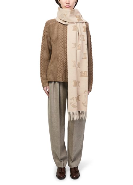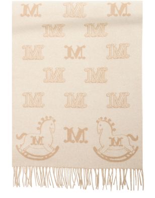 Reveal Max Mara's all-over print scarf, featuring delicate fringed edges and the brand's monogram for a signature touch. This modern accessory effortlessly elevates any look, blending refined style with distinctive details for a polished finish.