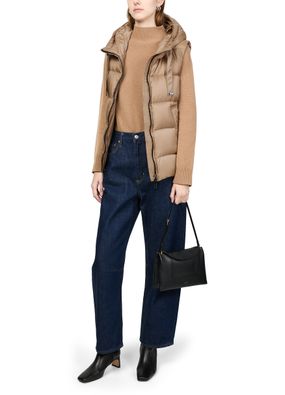Reveal Max Mara's Seivi sleeveless puffer jacket - THE CUBE. This short, collarless design features a sleek zipper closure and practical side pockets. Its padded texture and lined interior offer warmth and style, making it a versatile choice for any occasion.