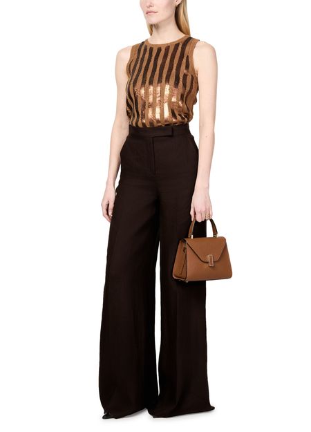 Max Mara's Sequoia wide-leg linen pants offer a relaxed elegance with a flared cut and ankle length. Designed with a concealed closure and visible stitching, these casual pants feature side pockets, welt pockets, and a back pocket for practicality. Effortlessly stylish, they elevate any outfit with ease.
