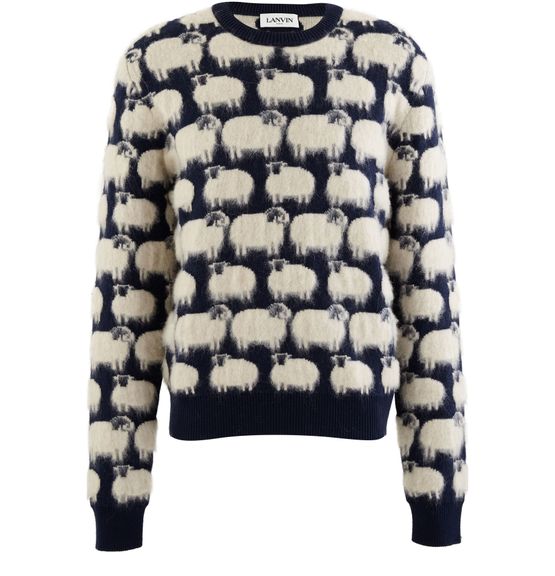 Relax in this soft and comfortable sheep patterned jumper from Lanvin. A subtle combination of luxurious fabric, like Alpaca, and masculine styling. The ribbed collar will show off your neck.