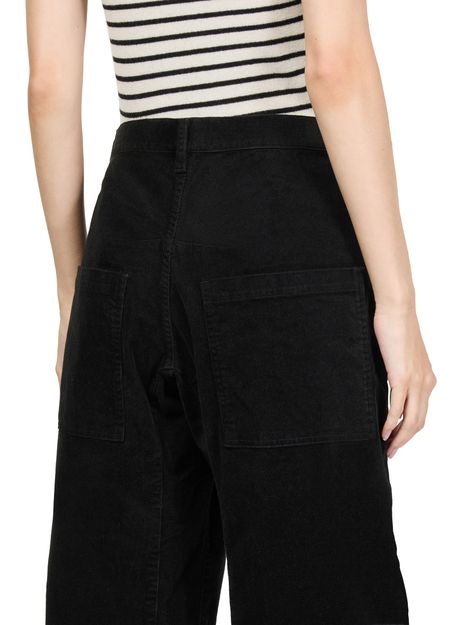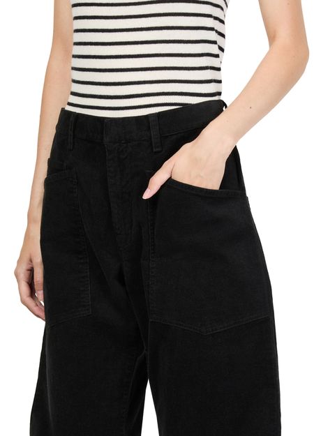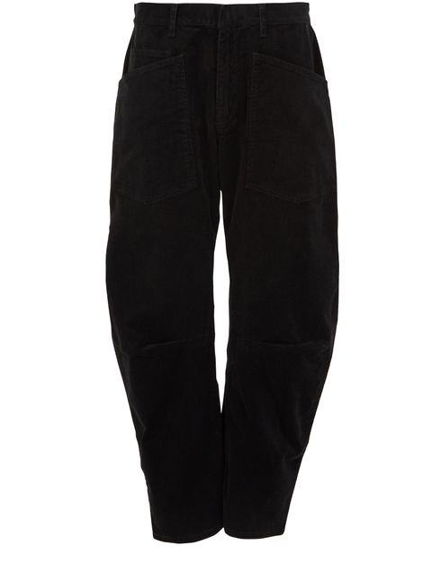 Reveal Nili Lotan's Shon corduroy pants, crafted in a calf-length cargo pant silhouette. Featuring a buttoned zipper closure, patch pockets, and visible stitching, these pants blend utility with modern flair. The belt loops and patch detail add versatility, making them ideal for both relaxed and elevated looks.