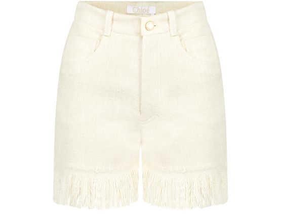 Chloé expresses its originality and audacity with these shorts with fringed finishes. A piece to wear during the sunniest season with a top and jacket from the same collection.