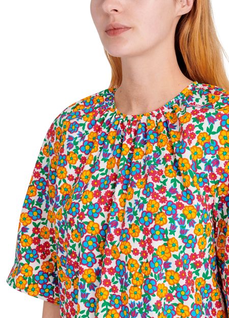 Description : Floral print, round neck, short sleeves, side splits, straight cut.