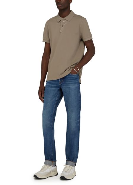 Tom Ford Distribution's polo offers a sleek and modern look with its slim fit and polo-shirt collar. The buttoned adjustable collar adds a sophisticated touch, while the short sleeves provide a comfortable and stylish fit. This versatile polo is perfect for both casual and dressier occasions, making it a wardrobe essential.