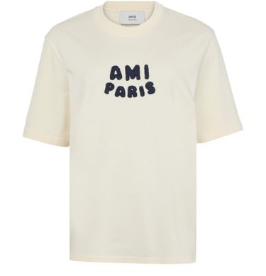 Ami's short-sleeved t-shirt showcases a classic crew neck and regular length, perfect for effortless style. Its visible stitching adds a touch of detail, while the chest logo and appliquéd logo create a distinctive flair. The embroidered logo enhances its charm, making it a must-have for any wardrobe.