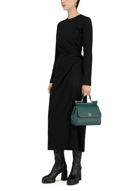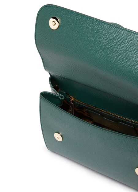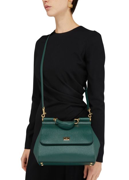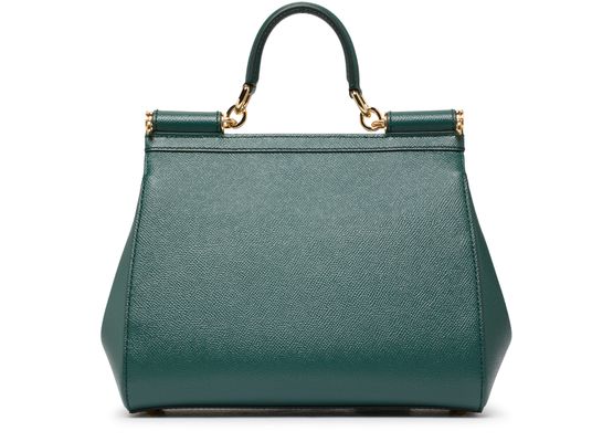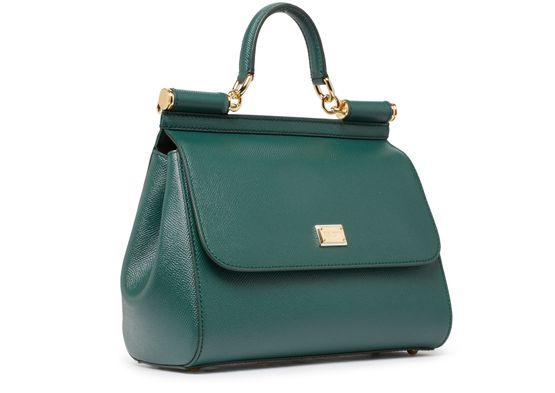 Dolce & Gabbana presents a very authentic piece with this Sicily bag. Its wide shape is fastened with a flap and can be carried by hand or over the shoulder using two thin handles.