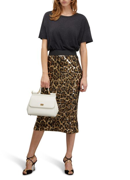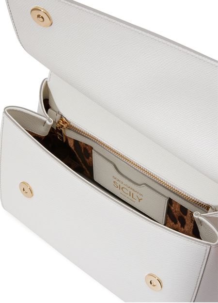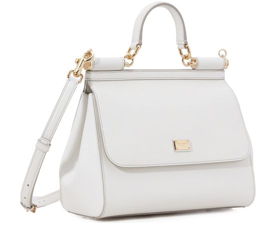 Dolce & Gabbana presents a very authentic piece with this Sicily bag. Its wide shape is fastened with a flap and can be carried by hand or over the shoulder using two thin handles.