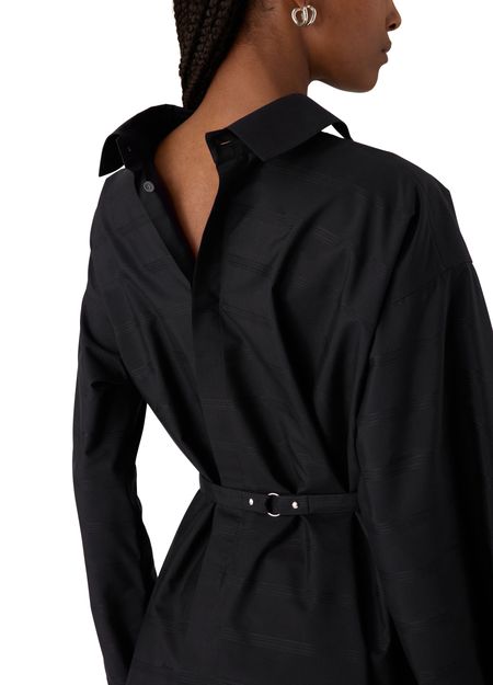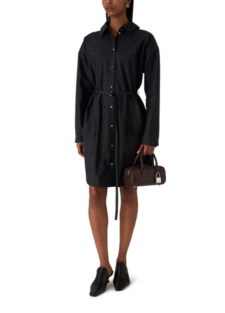 Reveal Loewe's silk and cotton shirt dress, a refined mini dress with long, cuffed sleeves and a tailored collar. The front buttoned closure and detachable belt add versatility, while visible stitching highlights its modern silhouette. Perfect for elevating your day-to-evening wardrobe with effortless sophistication.