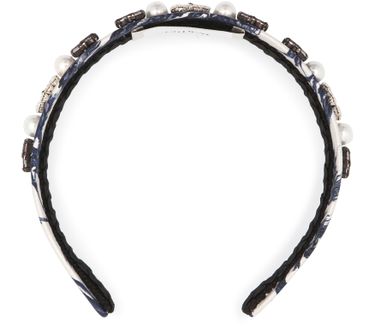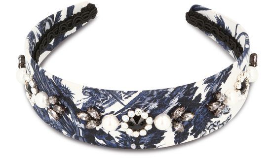 For its silk headband, the Erdem label has used a vintage design and adds its own personal touch of a floral motif and small decorative pearls.