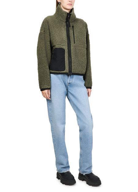 • Description : Logo on the side, warm fabric, short, high neck, long-sleeved, zipped breast pocket, patch pockets, zipper closure, patch detail.