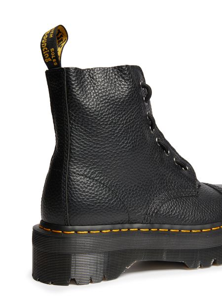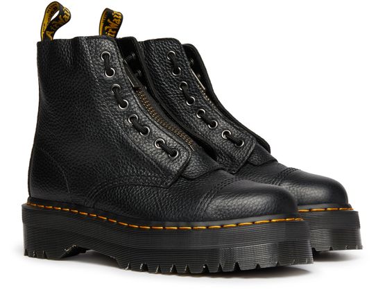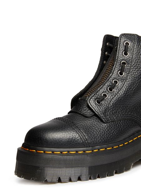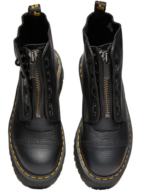 • Description : Boots, grained leather, thick outer sole, zipper closure, visible stitching.