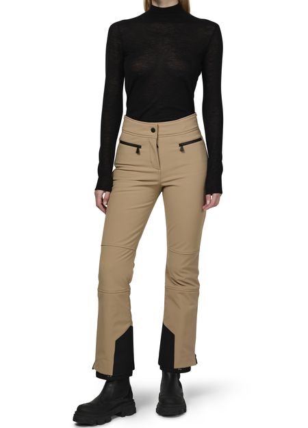 Moncler's Ski pants offer a sleek, ankle-length design perfect for casual outings. The buttoned and concealed zipper closure ensures a polished look, while visible stitching adds a touch of sophistication. With two front pockets for practicality, these pants effortlessly combine style and functionality, making them a staple for any wardrobe.