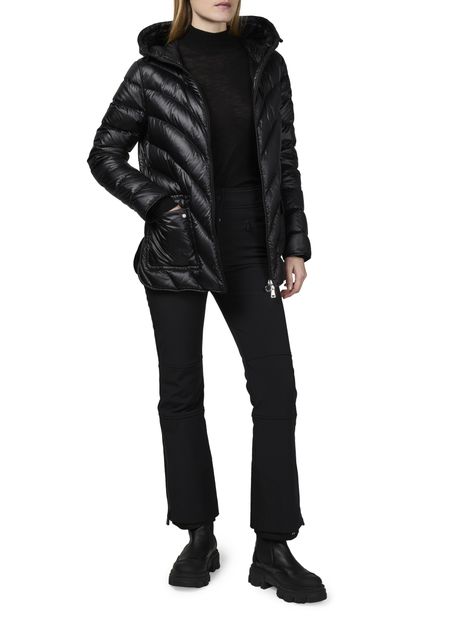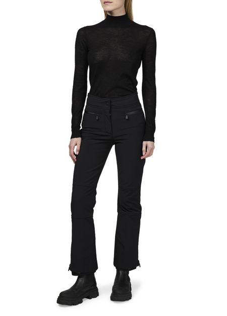 Moncler's Ski pants offer a sleek, ankle-length design perfect for casual outings. The buttoned and concealed zipper closure ensures a polished look, while visible stitching adds a touch of sophistication. With two front pockets for practicality, these pants effortlessly combine style and functionality, making them a staple for any wardrobe.