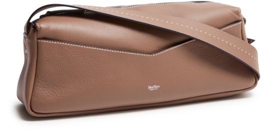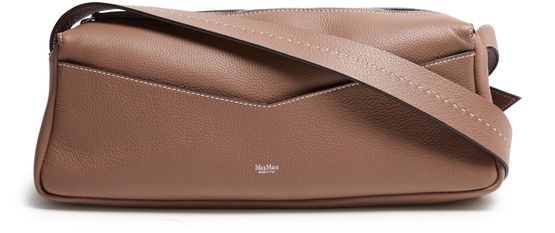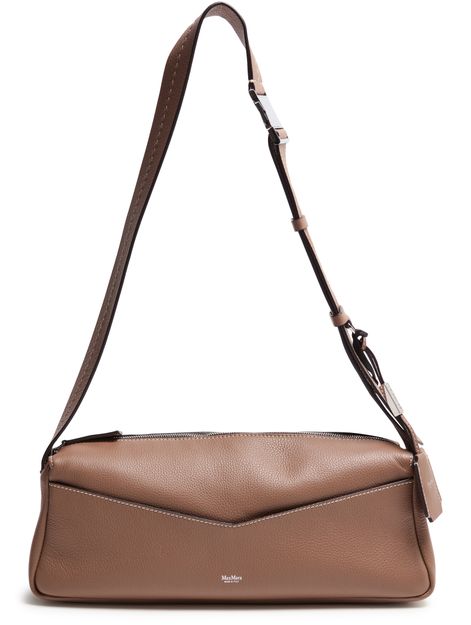 Reveal Max Mara's Skippers shoulder bag, crafted from grained leather with a single handle for effortless sophistication. The front logo and visible contrast stitching highlight refined craftsmanship, while interior and back pockets offer practical organization. A zipper closure ensures your essentials stay secure in this modern accessory.