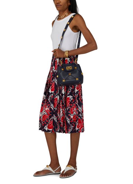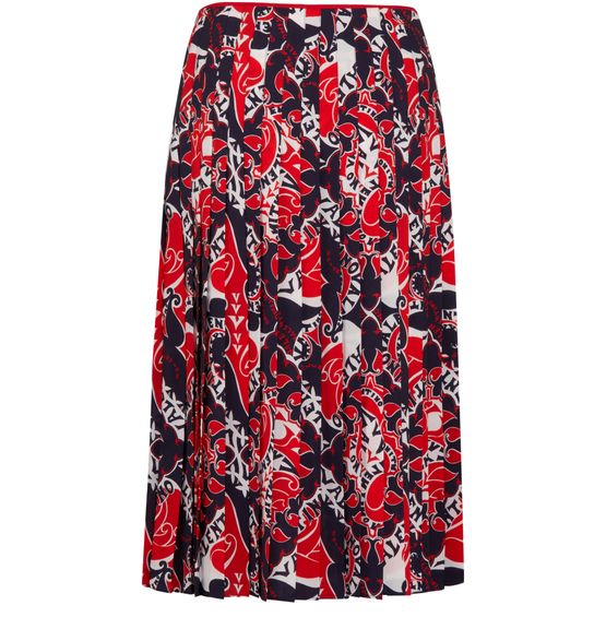 • Description : Flat pleat skirt, all-over pattern, front logo, gold finishes.