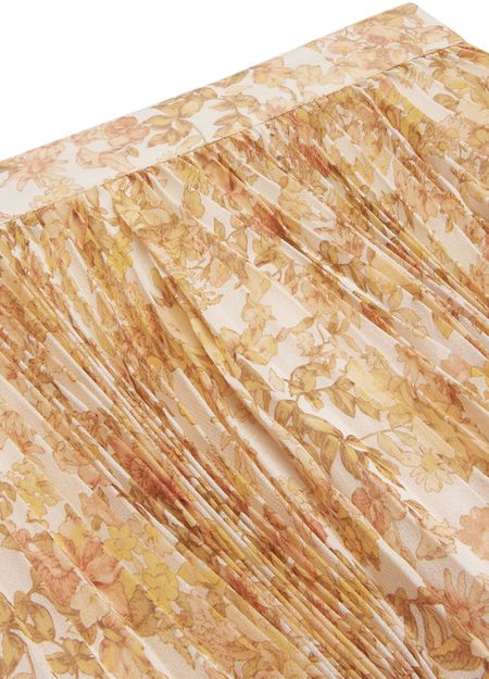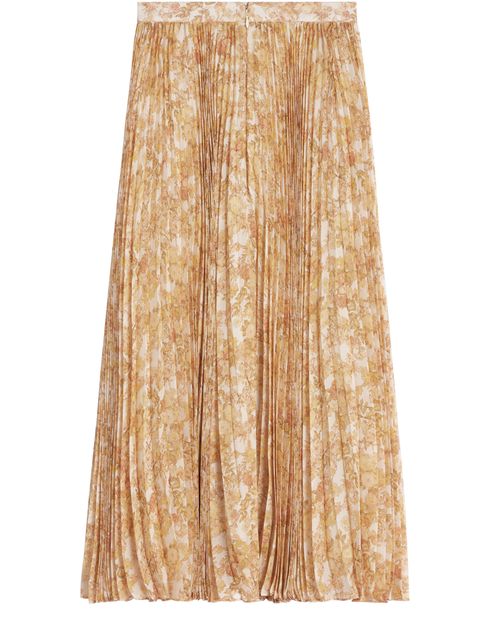 Skirt with sunburst pleats and aquarelle ramage print in georgett.
