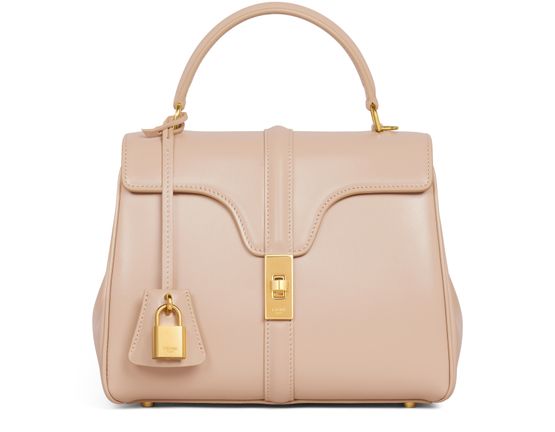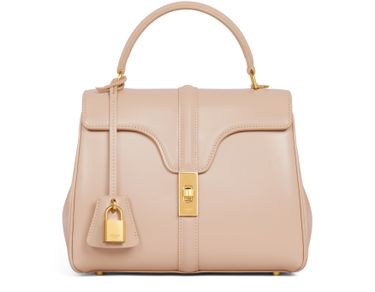 Celine's Small 16 bag in satiny calfskin is a versatile companion for any occasion. With its elegant turn lock closure and multiple carrying options—hand carry, shoulder carry, or cross-body carry—it effortlessly combines style and functionality. The thoughtfully designed compartments keep essentials organized, while protective studs ensure durability.