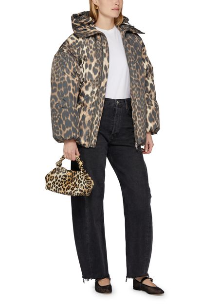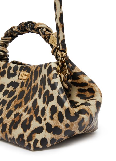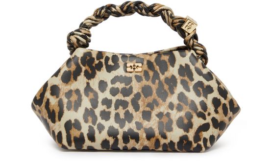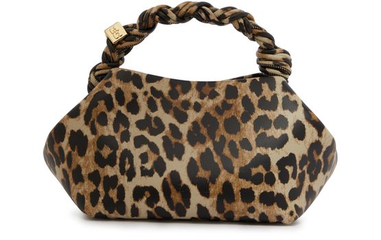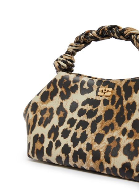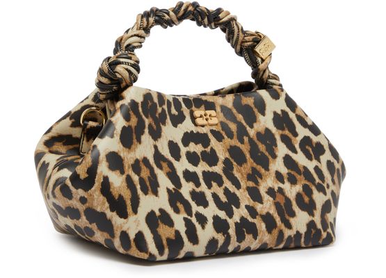 Ganni's Small Bou print bag showcases a striking all-over leopard print, perfect for making a bold statement. Its mini bag design is complemented by visible topstitching, adding a touch of sophistication. With a detachable strap, it offers versatile styling options, making it an essential accessory for any fashion-forward individual.