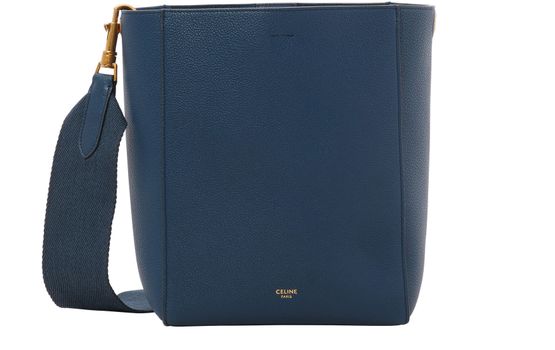 Celine presents the Small Sangle bucket bag in grained calfskin leather with an understated design. This piece is balanced and sleek.