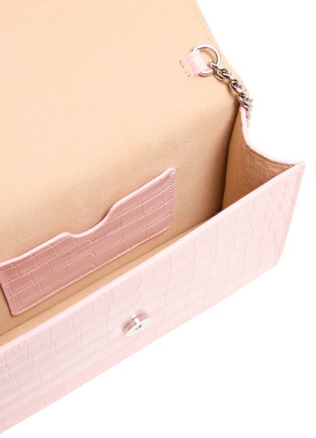 • Description : flap closure, magnetic closure, visible topstitching, logo at the back, silver finish, single compartment, worn crossbody, worn on the shoulder, interior patch pockets, mini bag.