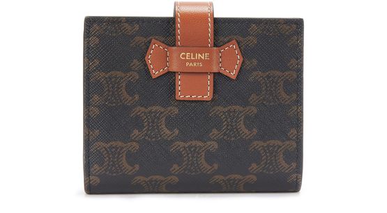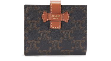 4 x 4 x 1 IN (10.5 x 9 x 2 CM) | Triomphe Canvas, trimmings in Lambskin | Calfskin lining | Gold Metal Hardware | Strap closure with snap button | One folded coin pocket with snap button | Five credit card slots | One note pocket | One flat pocket | | Reference : 10H262DB7.01TA