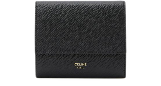 Crafted in grained calfskin leather by the House of Celine, this small wallet with a flap offers plenty of storage space coupled with an elegant design with golden finishing touches.