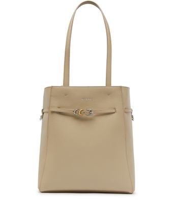 Givenchy'sSmall Voyou tote bag in leather features visible topstitching and a printed logo with silver letters on the front. The bag has a single compartment with a thin strap and silver finish hardware. It can be worn on the shoulder with double handles for a chic shopper/tote bag look.