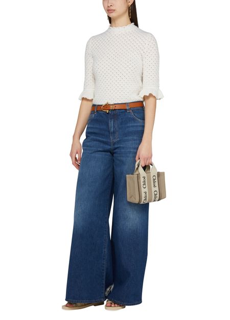 Chloé's Woody mini tote bag showcases a single compartment for effortless organization. With double handles and a wide strap, it's designed for hand carrying or slinging over the shoulder. The printed logo and visible topstitching add a chic touch, while interior patch pockets keep essentials neatly tucked away.
