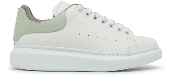 Alexander McQueen's round toe sneakers feature a closed design with a thick outer sole for added comfort and style. The logo on the tongue and at the back adds a touch of luxury. These oversized sneakers are perfect for making a fashion statement while ensuring a comfortable fit for everyday wear.