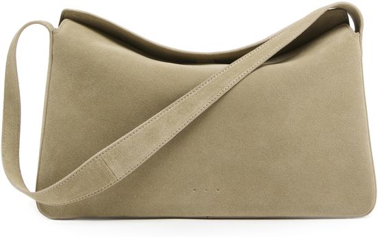 Description : magnetic closure, single compartment, single handle, engraved logo, interior patch pockets, visible topstitching, hand carried, worn on the shoulder, thin strap, baguette bag.