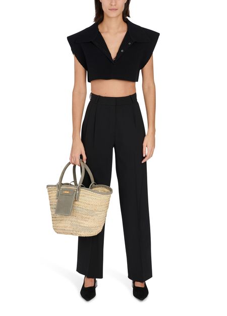 • Description : Basket bag, slender shoulder strap, visible stitching, two leather handles, large interior compartment, metal logo on the front, flap pocket on the front, leather finishes, artisanal craftmanship, basket sizing and details may vary.