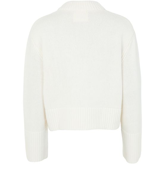 Reveal lisa yang's cashmere round-neck sweater, a cropped knitwear piece with a ribbed texture and dropped long sleeves. The round neckline and relaxed fit offer effortless sophistication, making it a versatile choice for layering or standalone styling across seasons.