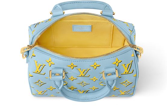 This Speedy Bandoulière 20 handbag in smooth calfskin boasts a colorful reinterpretation of the Monogram. An illusion of depth is created through the interplay of serigraphy-printed, slightly offset, Monogram patterns, one in color and the other darker. The bag's textile lining matches the colorway of the Monogram print.