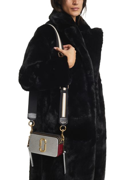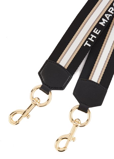 Marc Jacobs sets the tone with this sporty webbing strap decorated with stripes and the designer's logo, adjustable and ready to clip on to bags.