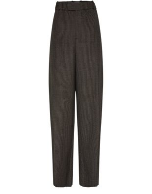 Bottega Veneta's Straight pants are designed in a modern, ankle length silhouette with a concealed zipper closure and belted waist. They feature the brand's appliquéd logo and are equipped with convenient side and back pockets, as well as flap pockets and belt loops for added functionality. The elasticated waist ensures a comfortable fit.