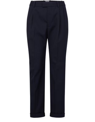 These high-waisted pants from Bottega Veneta feature a straight, wide cut for a sophisticated and timeless look. The pleated details on the front add a touch of elegant texture to the wool fabric. Perfect for both professional and casual wear, these pants are a versatile addition to any wardrobe.