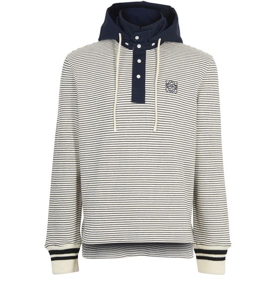 This daring Loewe hooded polo shirt has a highly contemporary design with horizontal stripes and thicker arm bands, accentuating its streetwear feel.