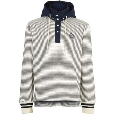 • Description : Long-sleeved sweatshirt, hood, adjustable button collar, ribbed cuffs, striped pattern, straight cut.
