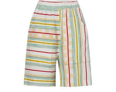 • Description : brand's monogram, logo at the back label, striped print, knee length, side pockets, patch pockets, welt pockets, elasticated waist.