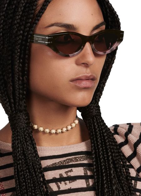 Description : Gradient tortoiseshell-effect acetate, tortoiseshell-effect acetate temples with Christian Dior Paris si, ruthenium-tone Christian Dior signature on right temple interior, 100% UVA/UVB protection, filter category: 3, can be adapted for prescription lenses.