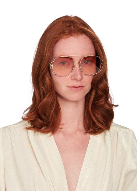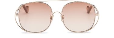 These sunglasses have slim temples, part of a classic design modernized by a metal frame surrounding the top and sides of this Loewe creation.