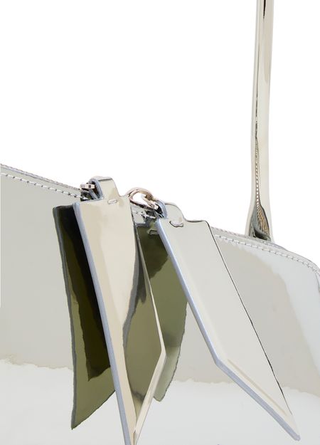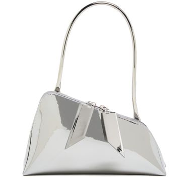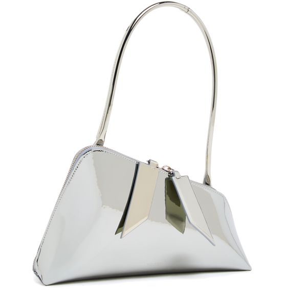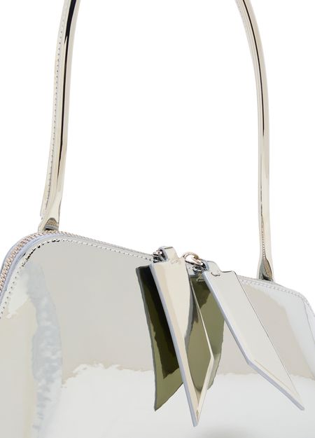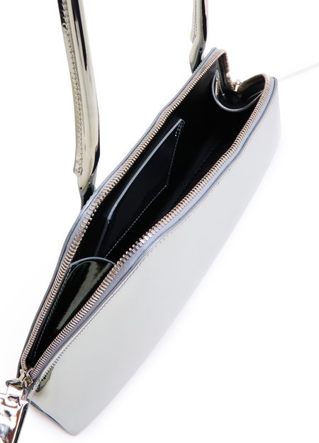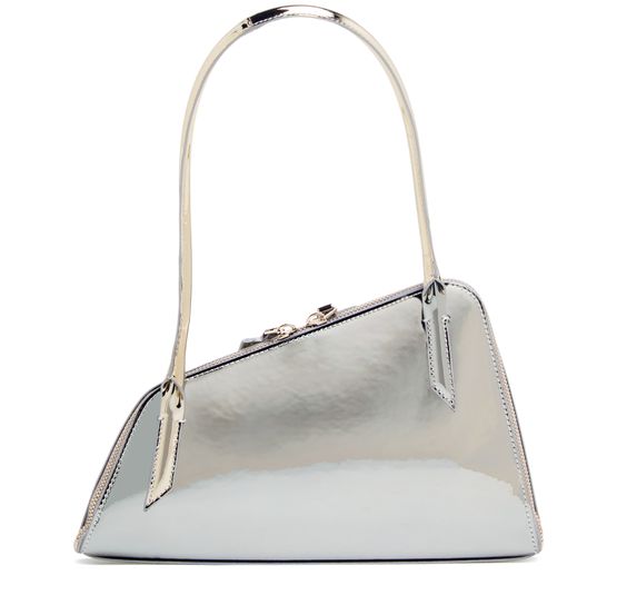 • Description : zipper closure, silver finish, single handle, visible topstitching, worn on the shoulder, thin strap.