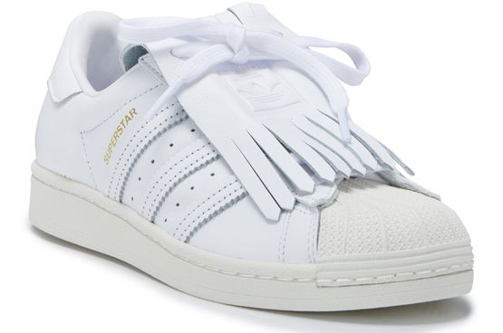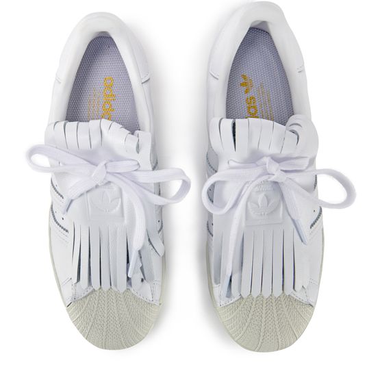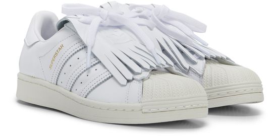 An original design from the Superstar Fringe sneaker line-up by adidas, with long fringe covering the tongue and laces that float at the front of the foot.