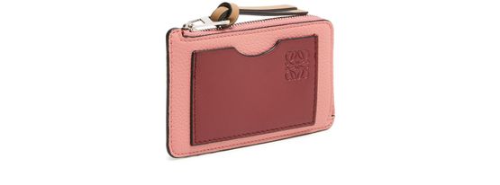 Reveal Loewe's coin cardholder in soft grained calfskin, featuring the iconic Anagram medallion and a refined padded texture. The sleek design includes a secure zipper closure, visible stitching, and interior slots for cards, all finished with an embossed logo for a sophisticated touch.