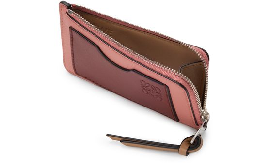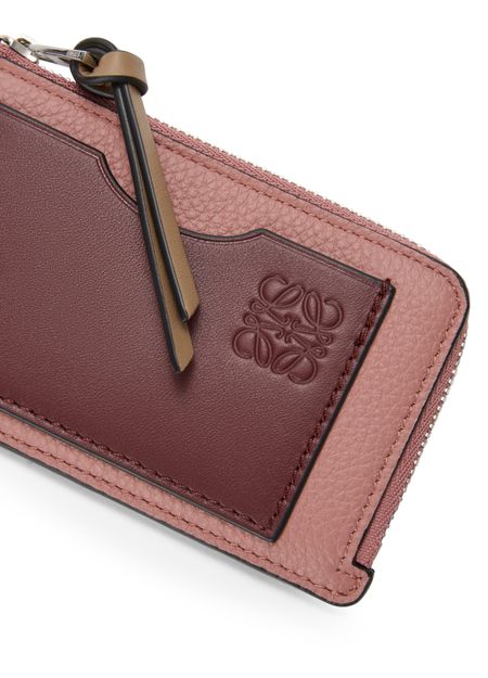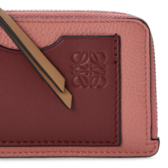 Reveal Loewe's coin cardholder in soft grained calfskin, featuring the iconic Anagram medallion and a refined padded texture. The sleek design includes a secure zipper closure, visible stitching, and interior slots for cards, all finished with an embossed logo for a sophisticated touch.