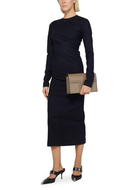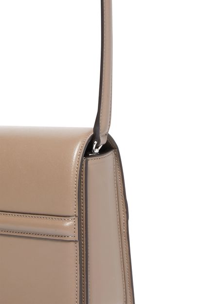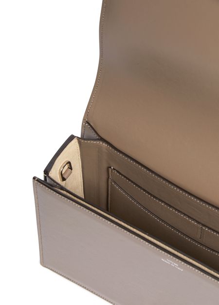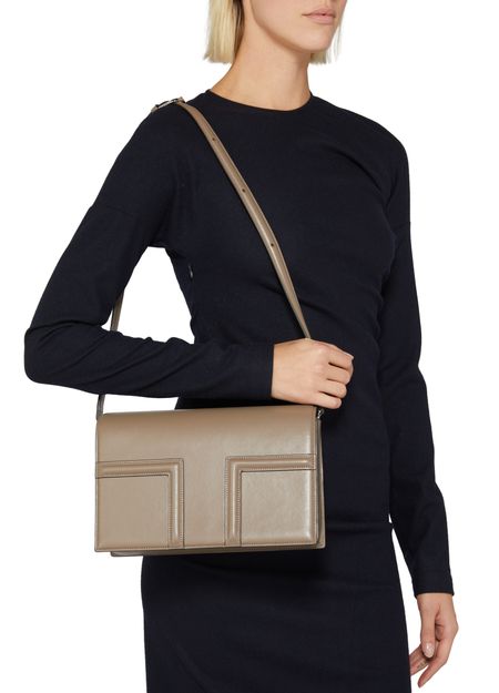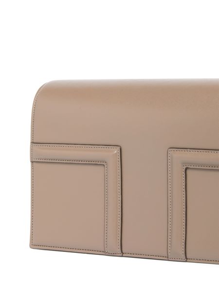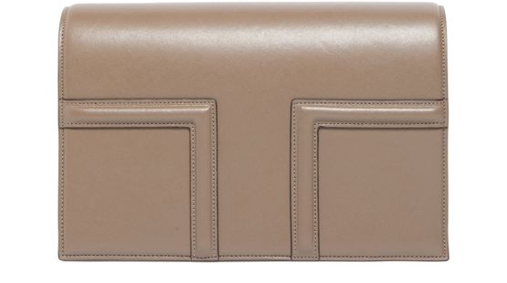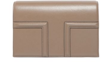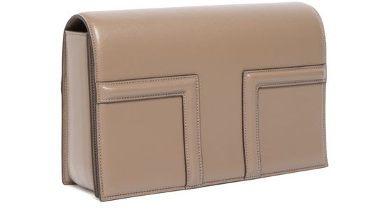 T flap bag is a sleek and versatile accessory with a thin strap that can be worn on the shoulder or crossbody. It features a detachable strap and gold finish details, including a printed logo on the front. The bag's interior offers convenient patch pockets, and its single compartment is secured with a flap closure and single handle for a chic and timeless design.